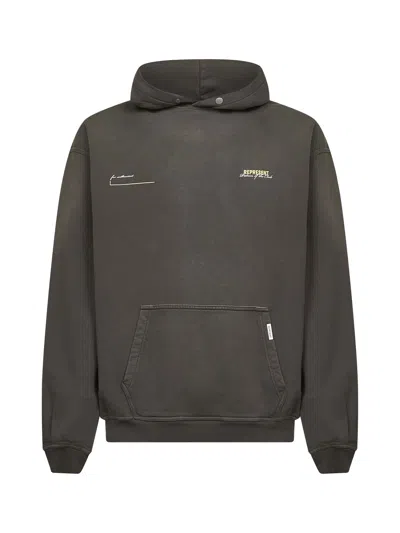 Patron Of The Club Olive Green Hoodie With Front And Back Logo Print In Cotton Man In Brown