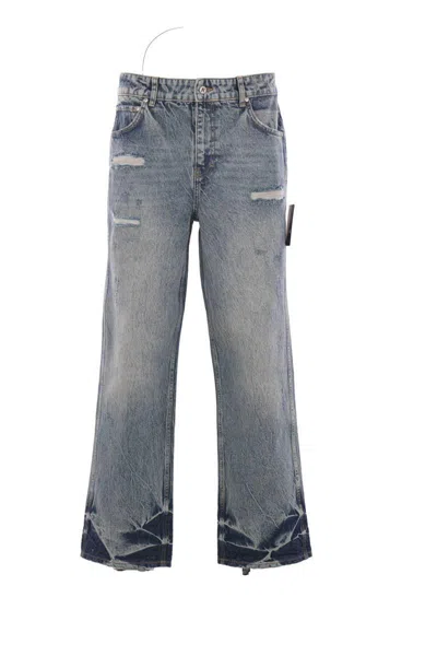 Casual Baggy Denim Trousers Embroidered Detail In Gray
