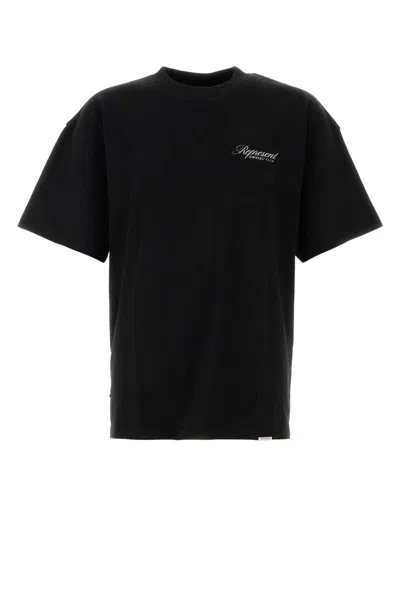 Black T-shirt With Logo Lettering On The Front And Faded Effect In Cotton Man In Gray