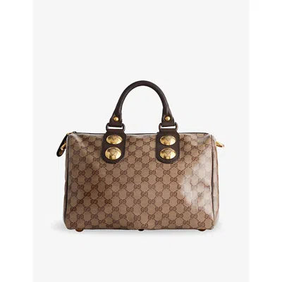 Womens Pre-loved Gucci Babouska Gg Crystal Boston Coated-canvas Top-handle Bag In Brown