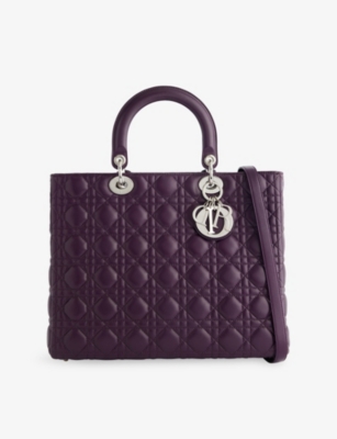 Womens Pre-loved Dior Large Lady Dior Leather Crossbody Bag In Purple