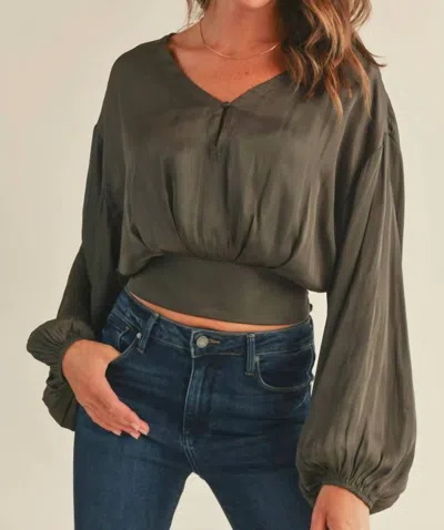 Buttercup Flutter Sleeve Top In Aquamarine In Gray