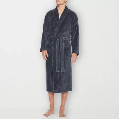 Mens Big And Tall Fleece Long Sleeve Long Length Robe In Gray