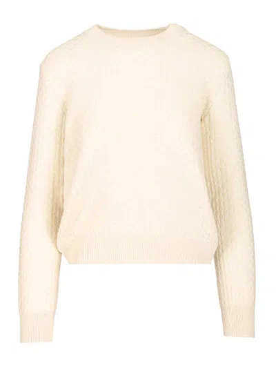 Damier Wool And Silk Jacquard Jacquard Crewneck Knitwear White In Neutral