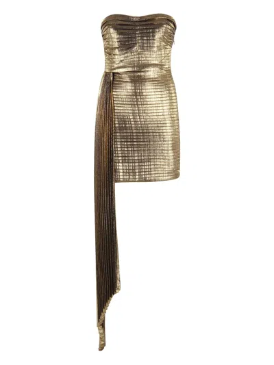 Fitted Mini Dress With Sweetheart Neckline In Metallic