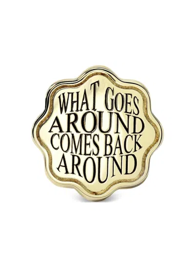 14k Yellow Gold Flying Pig Fantasy Ring In Brown