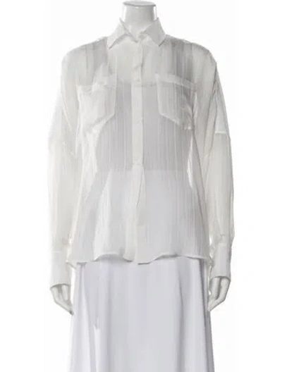 Pre-owned Silk Long Sleeve Button-up Top In White