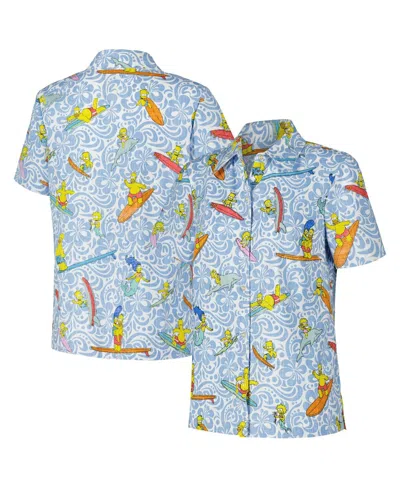 Women's Light Blue The Simpsons Cowabunga Relaxed Button-up Shirt