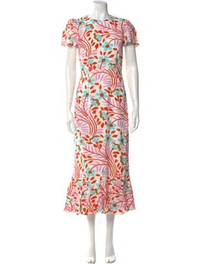 Pre-owned Printed Midi Length Dress In Red