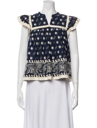 Pre-owned Floral Print Square Neckline Crop Top W/ Tags In Blue