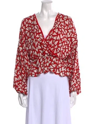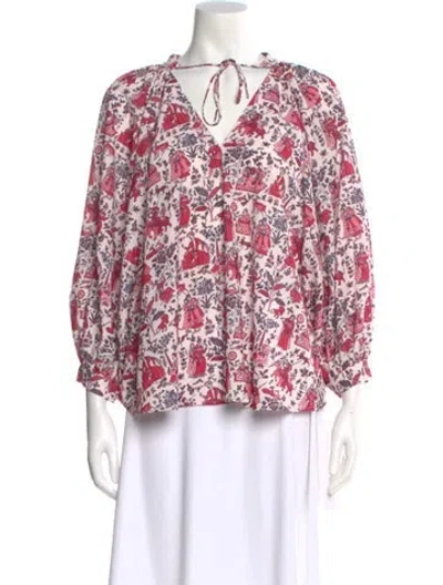 Pre-owned Printed V-neck Blouse W/ Tags In Pink