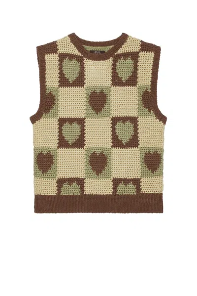 Crochet Knit Heart Vest In Brown