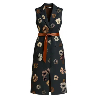 Women's Blue / Pink / White Luxury Navy Floral Coat Dress With Belt - Well Tailored Elegance