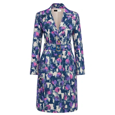 Women's Blue / Pink Handcrafted Abstract Print Single Breasted Coat In Multi