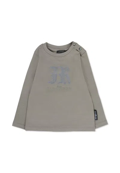 Grey T-shirt For Baby Boy With Velvet Logo In Gray