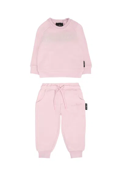 Lilac Suit For Baby Girl With Logo In Pink