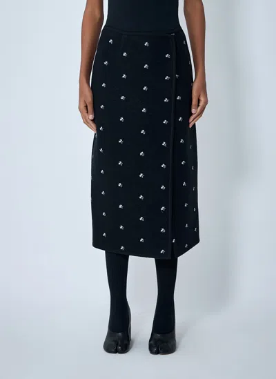 Walker Floral Embroidered Wool Fleece Wrap Skirt In Black