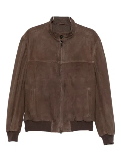 Zip-up Suede Jacket In Brown