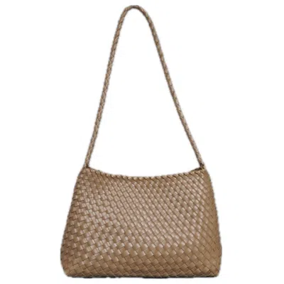 Women's Brown Hand Weaving Vegan Leather Shoulder Bag - Beige