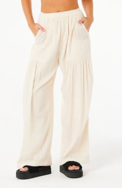 Vacation Crop Wide Leg Cotton Slub Pants In White