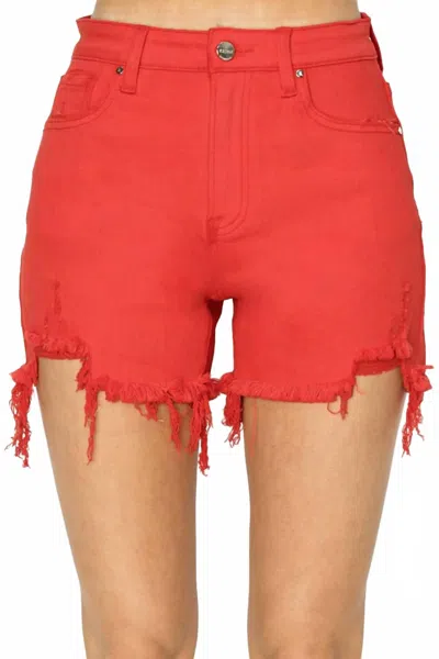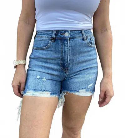 Sabrina High Rise Distressed Shorts In Blue In Burgundy