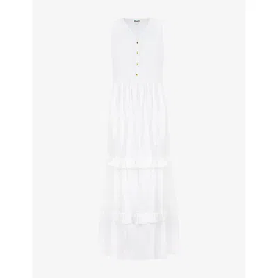 Womens White V-neck Tiered-hem Cotton Maxi Dress