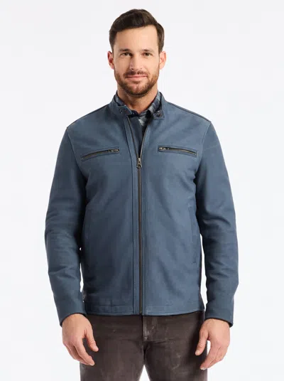 Artino Leather Racing Jacket In Blue