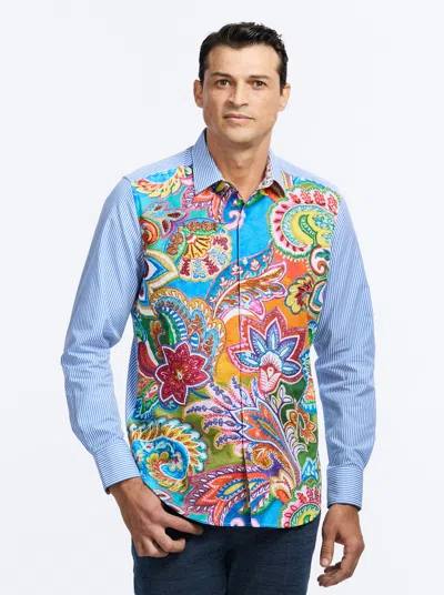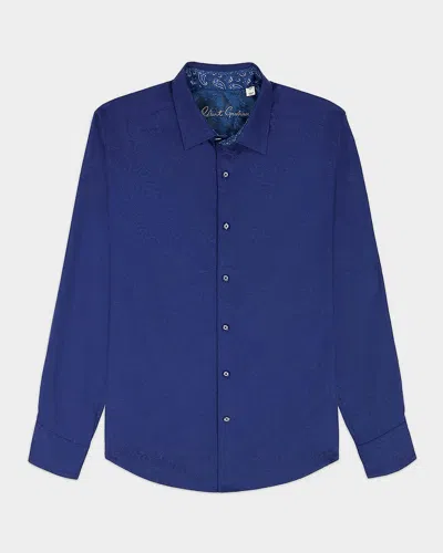 Men & Apos;s Hudson Cotton-stretch Tonal Paisley Sport Shirt In Blue