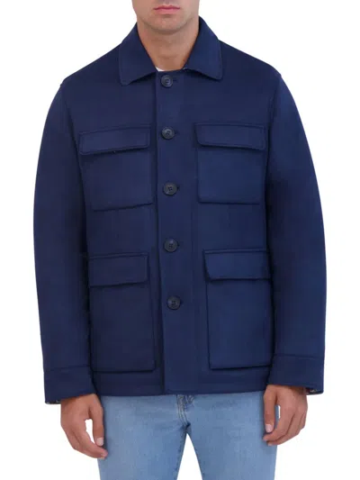 Faux Suede Safari Jacket In Navy