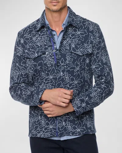 Kohan Botanical Print Shirt Jacket In Navy