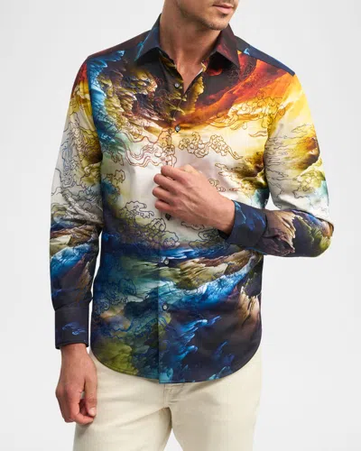 Men's Bramston Medallion Satin Button-down Shirt In Blue
