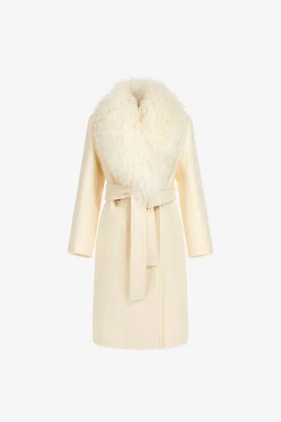 Coat With Fur Collar In Ivory