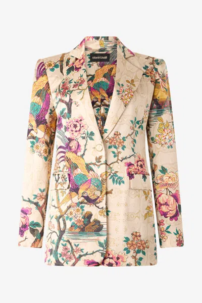 Silk Jacket With Flower And Pheasant Print In Multi
