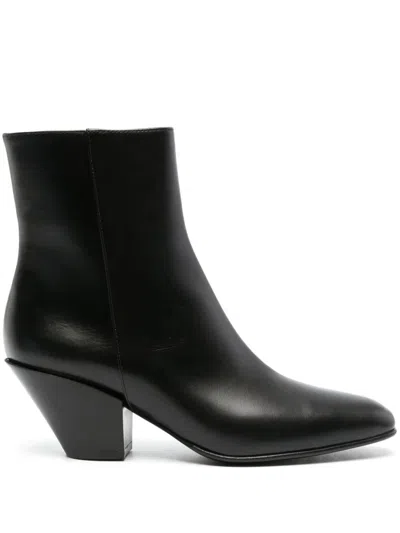 Aurea Texan Ankle Boots In Black Leather In Multi