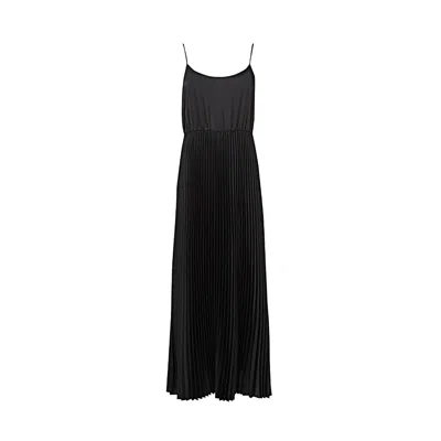 Women's Black Satin Pleated Slip Dress