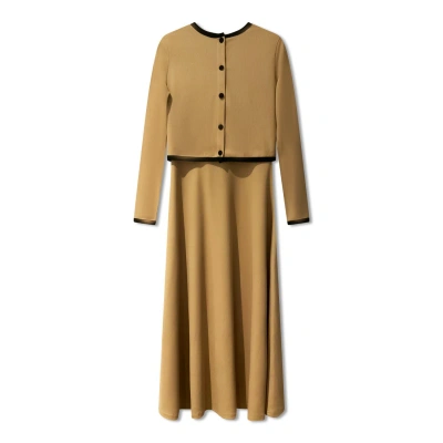 Women's Neutrals / Black / Brown Camel Contrast Ribbed Cardi-dress In Black/brown