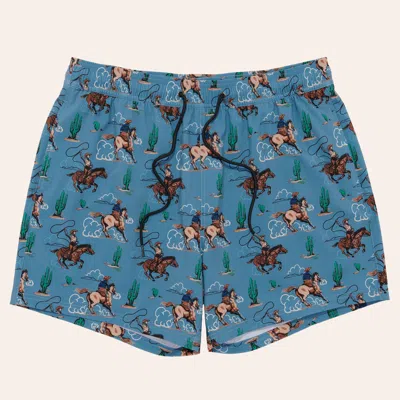 Denim Men's Blue Desert Cowboy Print Swim Trunks