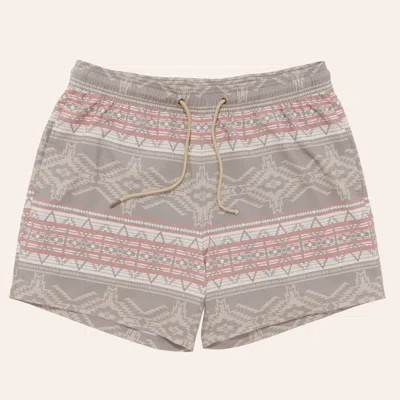 Denim Men's Gray Aztec Print Swim Trunks In Brown