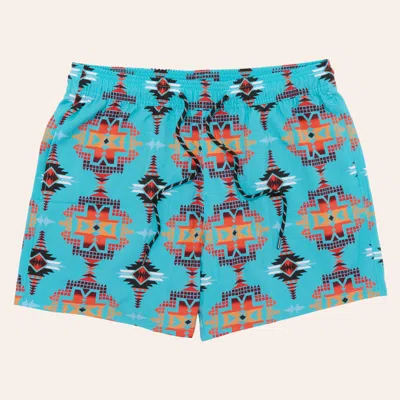 Denim Men's Turquoise Aztec Print Swim Trunks In Blue