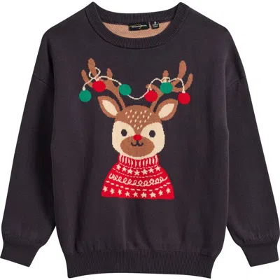 Kids' Oh Deer Cotton Crewneck Sweater In Burgundy