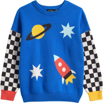 Kids' Space Race Cotton Crewneck Sweater In Blue