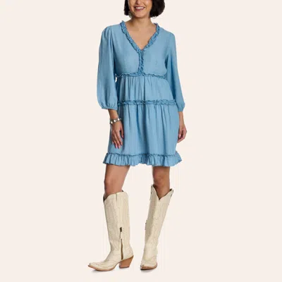 Women's Blue Western Print Long Sleeve Dress In Multi