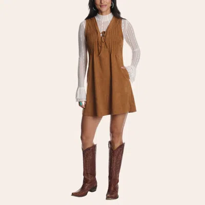 Women's Camel Faux Suede Tie Front Dress In Brown