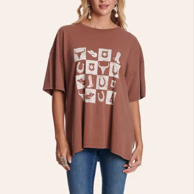 Women's Chestnut Western Checkers Graphic T-shirt In Brown