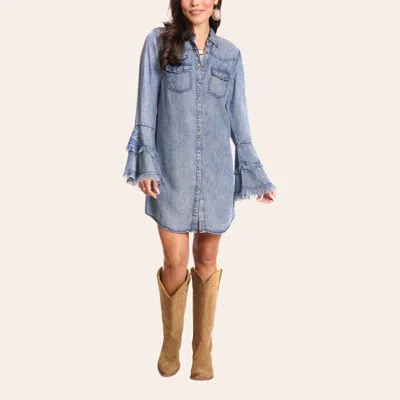 Women's Medium Wash Denim Frayed Shirt Dress In Blue