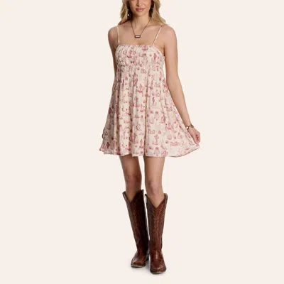 Women's Rose & Cream Cactus Print Spaghetti Strap Dress In Burgundy