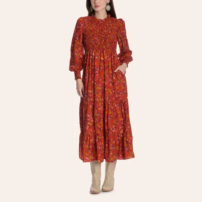 Women's Rust Horse Print Long Sleeve Midi Dress In Multi