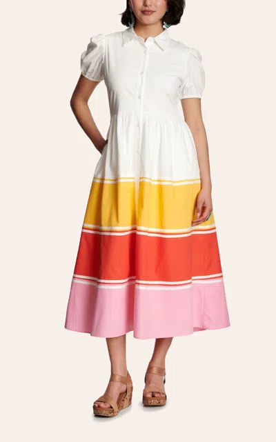 Women's White Color Block Puff Sleeve Midi Shirt Dress In Multi