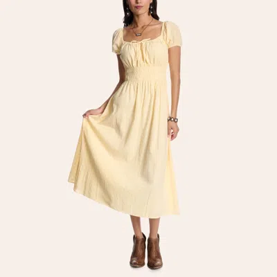 Women's Yellow Smocked Waist Cap Sleeve Midi Dress