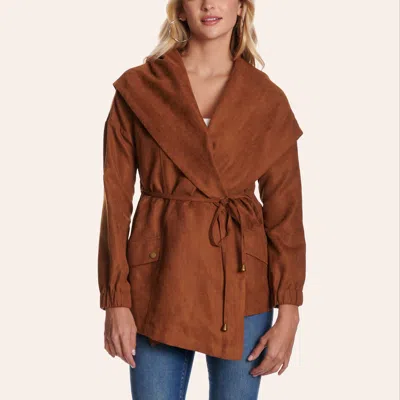 Women's Brown Faux Suede Tie Front Jacket